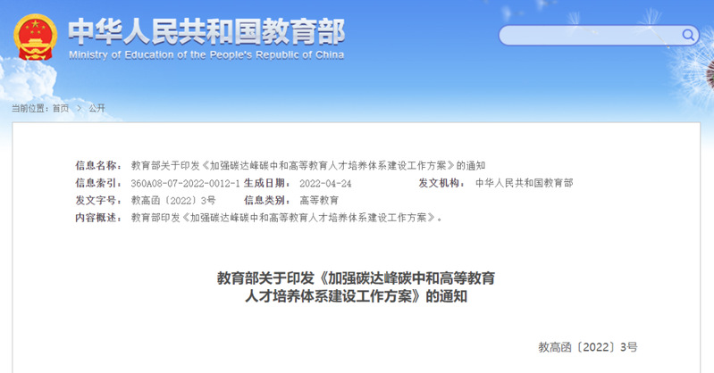 加强碳达峰碳中和高等教育人才培养体系建设工作方案